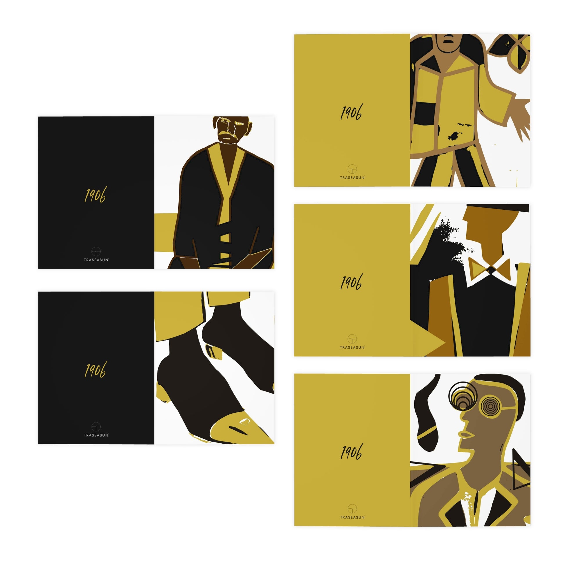 This new 5-pack variety of ΑΦΑ greeting cards is a pack designed to celebrate the rich legacy of Alpha Phi Alpha brotherhood and pay homage to the vibrant artistry of renowned African American painter, William H. Johnson. Each card in this set is a masterpiece in itself, meticulously crafted with signature black and old gold, and designs inspired by Johnson's iconic works.